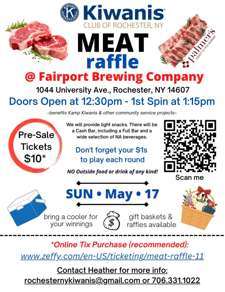 Join us for our Kiwanis Meat Raffle Every ticket you buy helps the Kiwanis Club of Rochester NY support local children and families through meals, activities, and community programs.